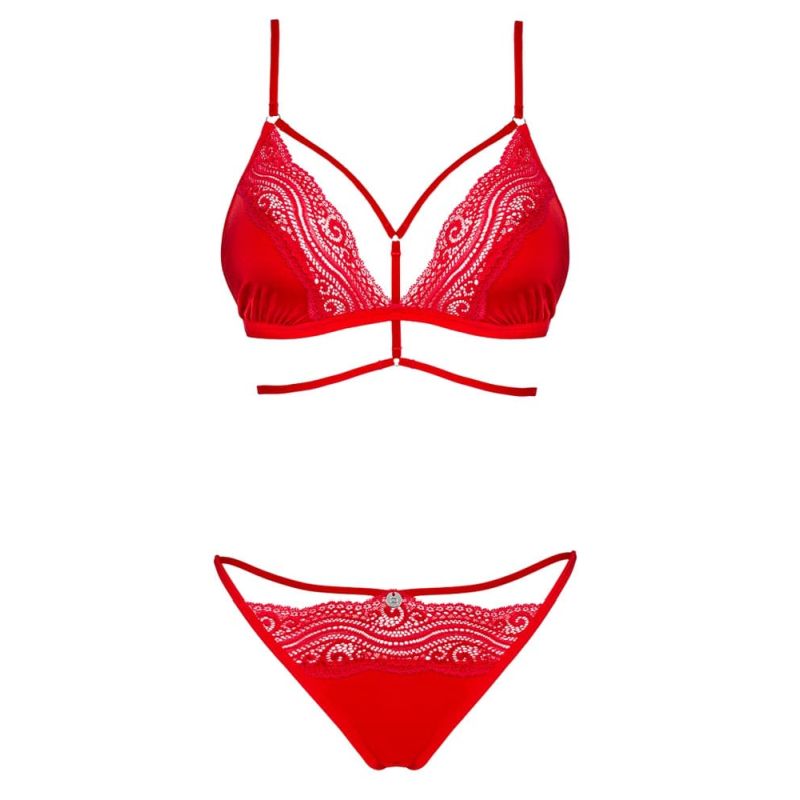 BH und Slip als Set Diyosa von Obsessive aus weichem Stretchmaterial mit Einsätzen in Spitzenoptik. BH mit Stretchriemchen oben und unten der Cups. Der Hakenverschluss im Rücken und die Träger sind passend verstellbar. Der dazu passende Slip ist mit Stretchriemchen am vorderen Bund versehen.