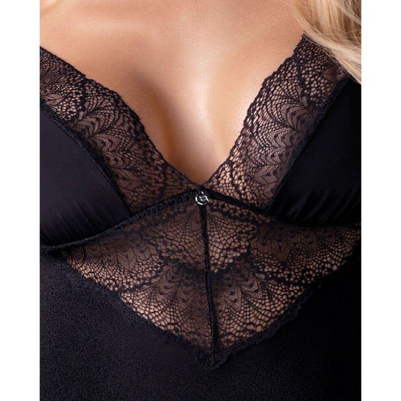 Schwarzer eleganter Body Lobellis von Obsessive. Feiner Material-Mix aus seidigem Stretch und bildschöner Spitze an und unter den Cups sowie an den Beinausschnitten. Rundum weich und elastisch für hohen Tragekomfort. Zwischen den soften Cups mit dezentem Schmuckdetail. Die Träger sind passend verstellbar. Im Schritt mit Hakenverschluss.