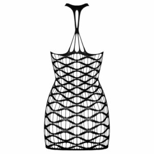 Weckt Fantasien: Kurzes, schulterfreies Kleid von Cottelli FANTASY in extravaganter Netz- und Bänderoptik mit großen Maschen. Alles nahtlos gefertigt und schön weich und elastisch für hohen Tragekomfort. Der dazu passende kleine String aus Spitze ist inklusive.