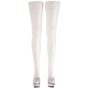 Halterlose Strümpfe mit 7 cm breitem Spitzenabschluss. Traumhaft Weiß für große Auftritte. 17 den. Oekotex-zertifiziert.