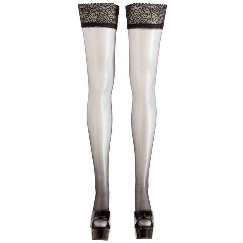 Halterlose Strümpfe mit aufregendem Spitzenabschluss. Ein innen liegendes Silikonband sorgt für einen sicheren Sitz. Oeko-Tex zertifiziert.