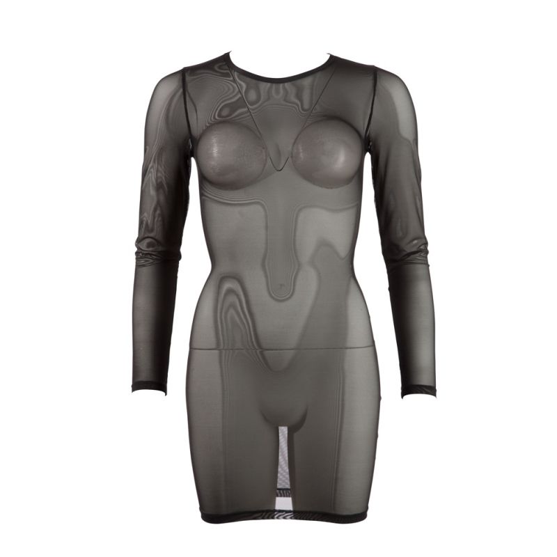 Wie eine zweite Haut legt sich dieses figurbetonte Minikleid über Ihre Kurven und lässt alles durchschimmern – sehr zu seiner Freude… Schwarzes Powernet-Kleid mit langen Armen und Rundhalsausschnitt. 90% Polyamid, 10% Elasthan.