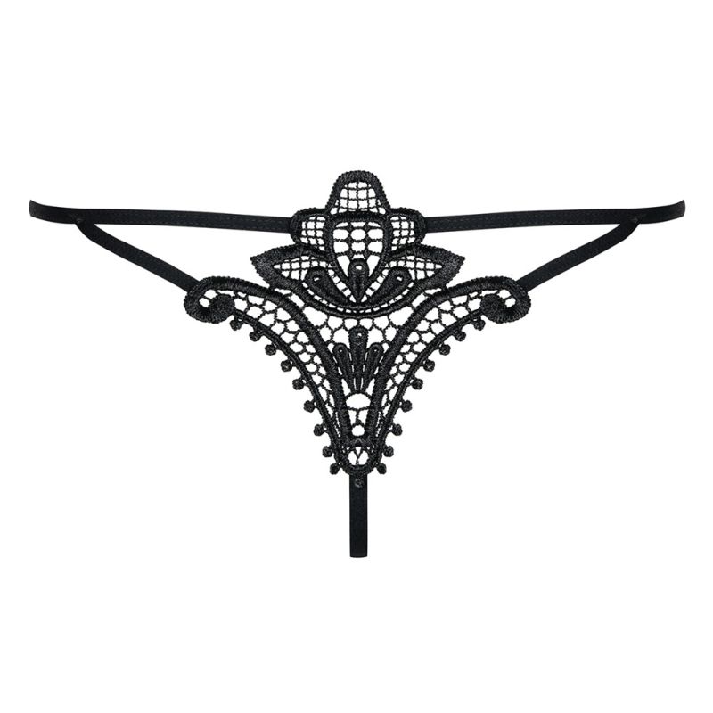 Knapp geschnittener String mit aufwendiger Stickerei hinten und raffinierten Riemchen-Details. Angenehm elastisch und passformsicher.