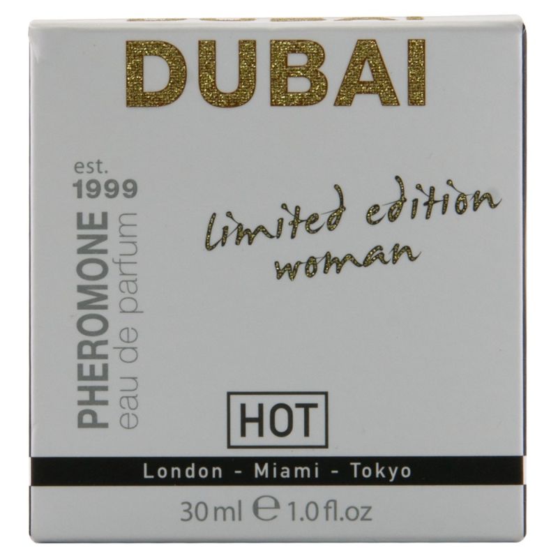 Das Pheromone Eau de Parfum DUBAI limited edition woman von HOT ist ein verträumter unwiderstehlicher Duft aus der edlen Kombination von Vanille und Moschus mit einem Hauch der Zitrone. Angereichert mit Pheromonen, um die weibliche Attraktivität zu unterstreichen und zu betonen. Für eine anziehende verführerische Ausstrahlung!