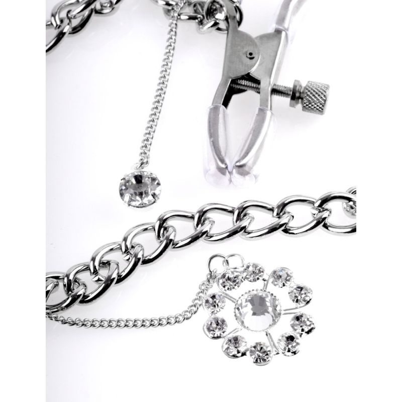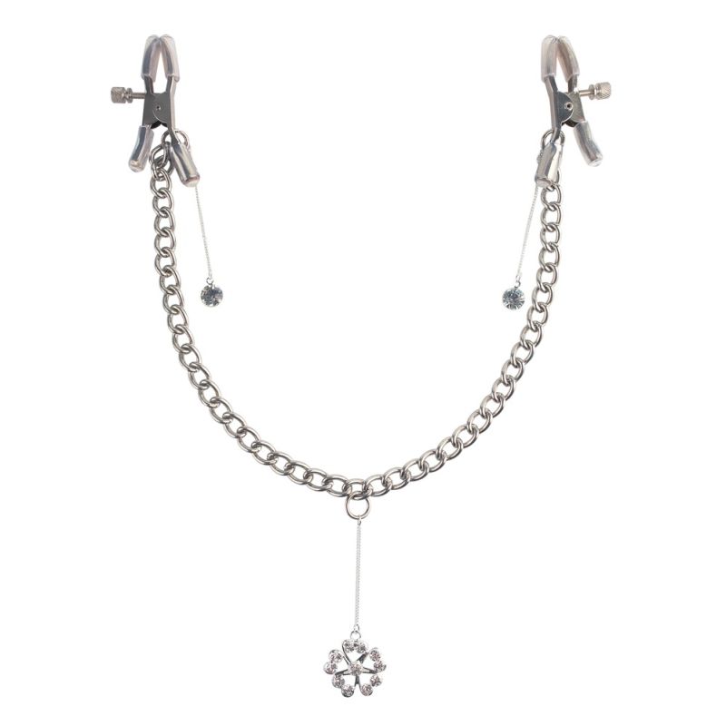 Diese Nippelklammern sind für besonders edle Fetischspielchen gemacht! Man genießt den süßen Schmerz an den Nippeln oder auch nur leichten Druck, denn die Klammern selbst sind leicht zu verstellen. Das Schmuckelement am Verbindungskettchen rundet das Design ab und lädt zu aufregenden Spielchen ein.