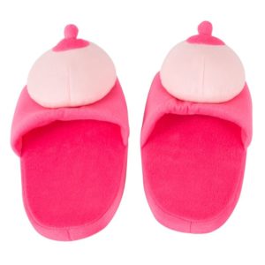 Gemütliche rosafarbene Plüsch-Puschen für IHN mit Busen-Aufsatz oben. Einheitsgröße 42 bis 45. Bezug: 100% Polyester, Futter: 100% Polypropylene.