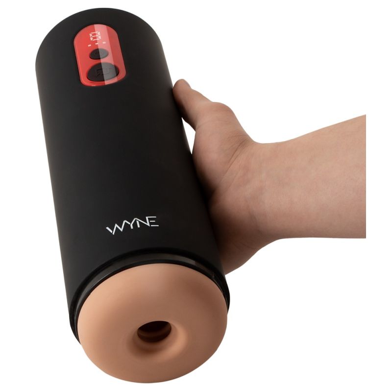 Powermotoriger Masturbator 08 von WYNE, der den Penis in der sich Auf-und-Ab-bewegenden Innensleeve mit pulsierend-schüttelnder Shaking-Funktion (7 Modi) rundherum verwöhnt. Dazu mit extra Booster Button, der den Masturbator sofort von Null auf Hundert bringt. Power sofort für intensive Höhepunkte! Alles ist bequem per Knopfdruck direkt am handlichen Toy steuerbar. Die praktische LED-Anzeige sorgt dabei für die einfache Kontrolle der verschiedenen Modi.