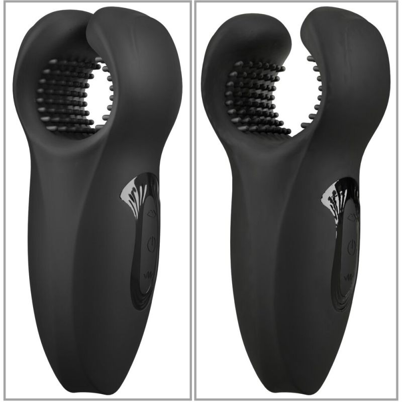 Der Man Wand with Vibration and Moving Wings von Rebel nimmt mit seinen beweglichen Vibro-Flügeln Penis oder Hoden fest in den massierenden Griff. Stimuliert zusätzlich mit soften Noppen und intensiven Vibrationen. Perfekter Handjob ganz bequem per Knopfdruck!