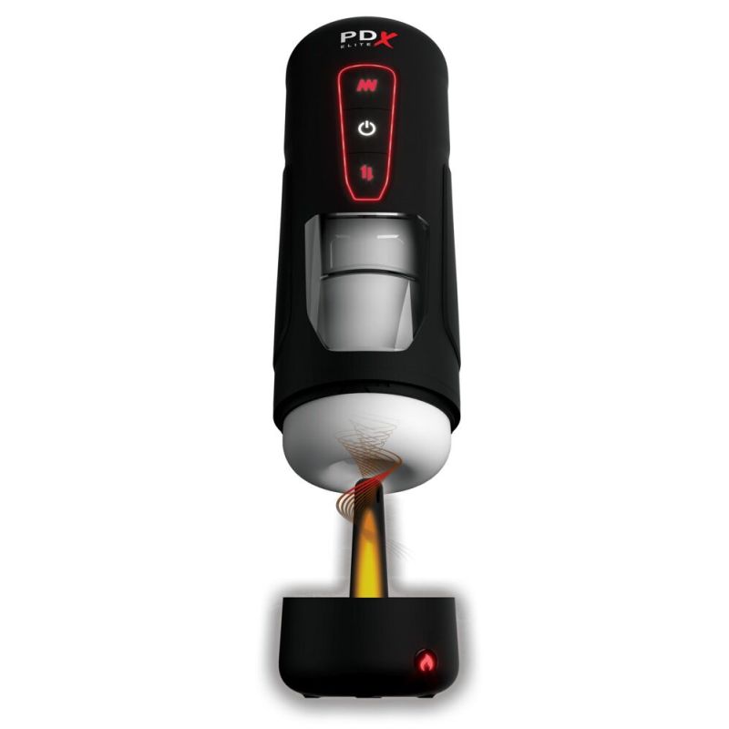 Vibrating Warming Masturbator Milk Me Hotter von PDX Elite im handlichen diskreten Gehäuse mit Wärmestab in der Schutzkappe (Body Heat Technology). Mit kraftvoller Vibration und intensiver intermittierender Stoßmassage, die rundherum den Penis verwöhnen. Dazu auf Knopfdruck die Wärmefunktion, um den Masturbator schnell auf die richtige Körper- und Betriebstemperatur zu bringen.