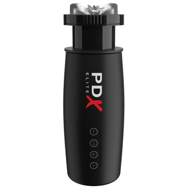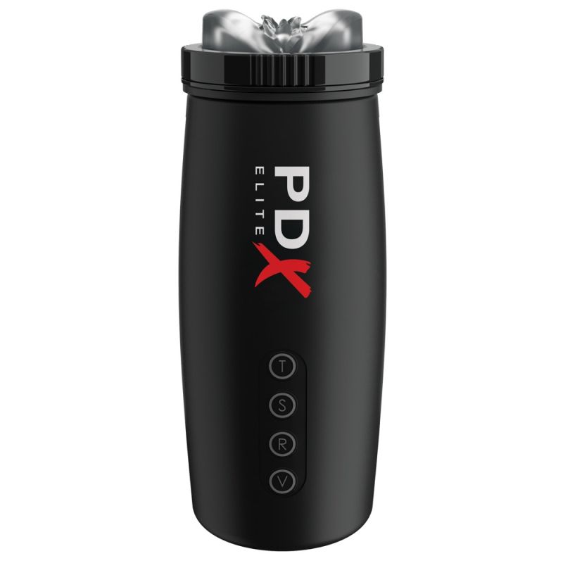 Schwarzer Masturbator mit 2 Stoßgeschwindigkeiten, 5 Vibrationsmodi und 3 Saugmodi, die separat steuerbar sind. Erwärmt sich zügig auf Körpertemperatur und hat einen gerillten, sowie genoppten Lustkanal. Wird mit mitgeliefertem Ladekabel aufgeladen für stundenlangen Spaß.
