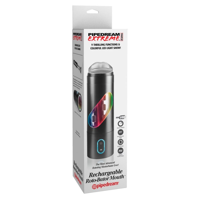 Dieser Masturbator massiert den Penis in 9 ekstatischen Rotationsmodi und mit realistischer Mund-Öffnung. Das Highlight ist dabei, dass er die Richtung auf Knopfdruck ändern kann. So entstehen die unglaublichsten Massagen, während die unterschiedlichen Ebenen von Stimulationsstrukturen den Penis umschließen und verwöhnen. Jeder Modus hat ein eigenes Lichtmuster in verschiedenen Farben. Die Sleeve ist entnehmbar für eine schnelle Reinigung. Inklusive USB-Ladekabel.