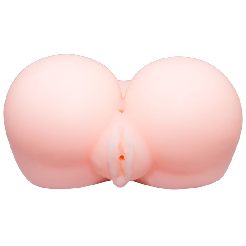 Hautfarbener Masturbator im Po-Design mit detailgetreuer Vagina- und Anusöffnung mit beidseitig offenen Lustkanälen: Vaginakanal innen genoppt (13 cm tief), Anuskanal innen gerillt (9 cm tief). Mit 2 kleinen Extra-Öffnungen, z. B. für Vibro-Bullets (nicht beiliegend).