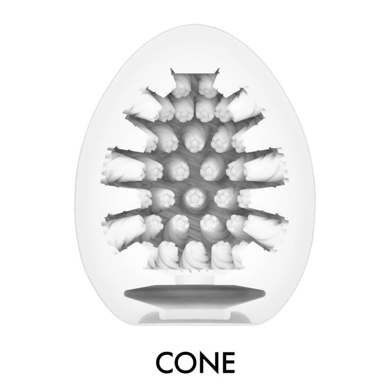 Einmal-Masturbator Egg Cone Stronger von Tenga mit neuer intensiver Kegel-Reizstruktur im Inneren für besonders starke Empfindungen. Die ultraflexible Masturbator-Sleeve befindet sich in der diskreten eiförmigen Hülle und wird zusammen beim Handjob mit dem beiliegenden Gleitgel verwendet.