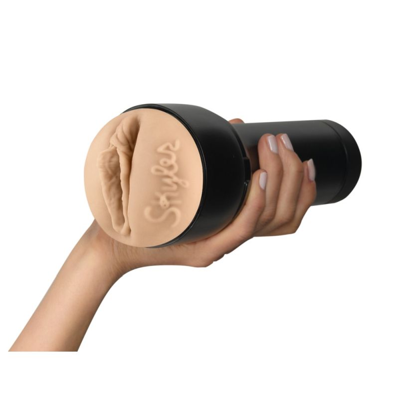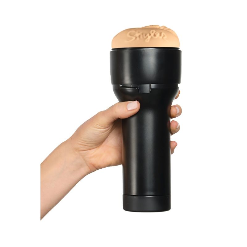 Masturbator Feel Lauren Phillips von Kiiroo mit original abgeformter Vagina-Öffnung von Erotikstar Lauren Phillips und neben den Vulvalippen mit ihrem Autogramm signiert. Das sehr abwechslungsreich strukturierte Innenleben kommt der engen Vagina von Lauren ganz nah und sorgt für eine intensive Massage beim Handjob. Die Innensleeve aus hautähnlichem, Superskin-Material lässt sich zur Reinigung leicht aus dem griffigen, diskreten Gehäuse entnehmen.