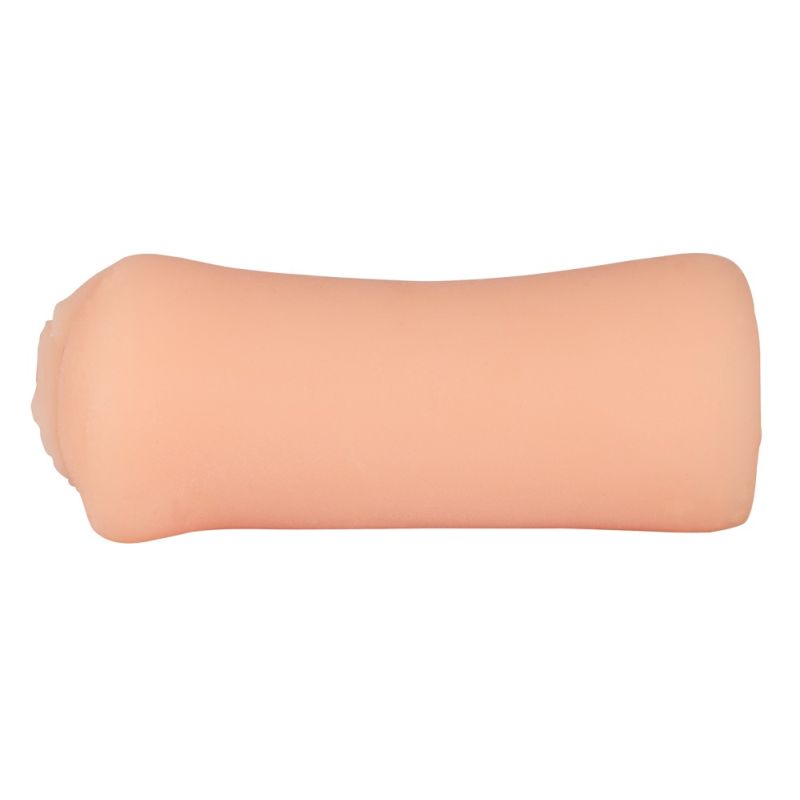 Handlich klein in Vaginaform mit ausgeprägten Schamlippen und Kitzler. Innen genoppt und gerippt, beidseitig offen. Extrem dehnbar, passt sich dem Penis an. Hautfarben. Ca. 11 cm lang. Außen glatt. Material: TPR.