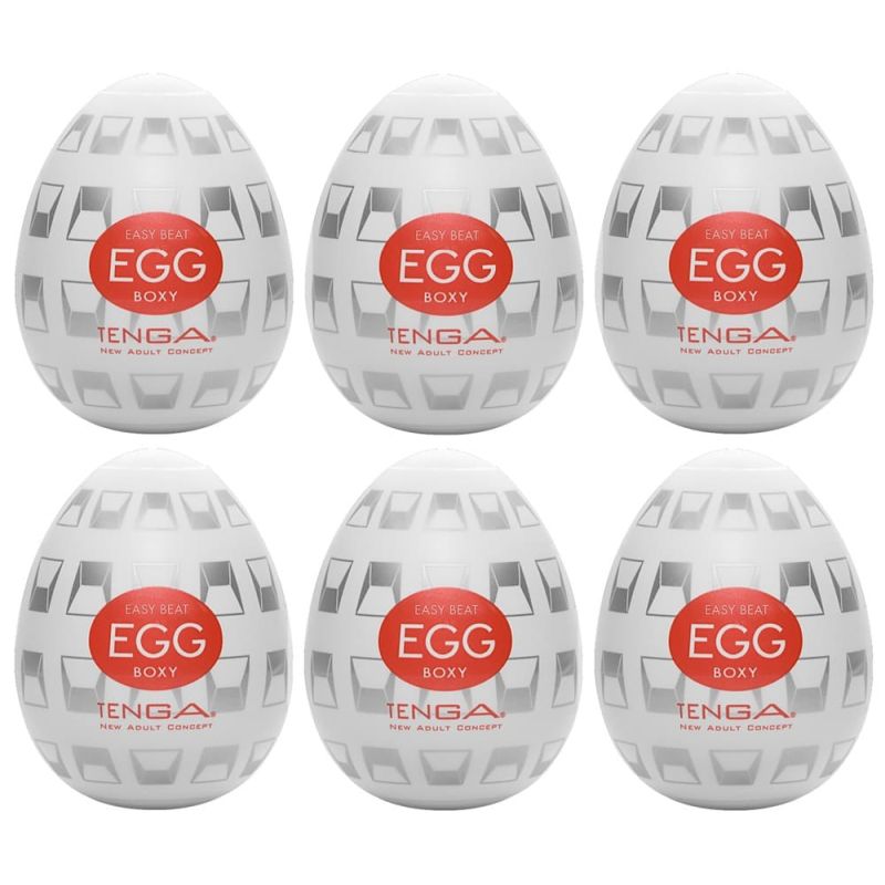 Kompakter Einmal-Masturbator Egg Boxy von Tenga mit spannender, vielseitig gestufter Reizstruktur im Inneren. Die ultra flexible Masturbator-Sleeve befindet sich in der eiförmigen Hülle und wird zusammen beim Handjob mit dem beiliegenden Gleitgel verwendet.