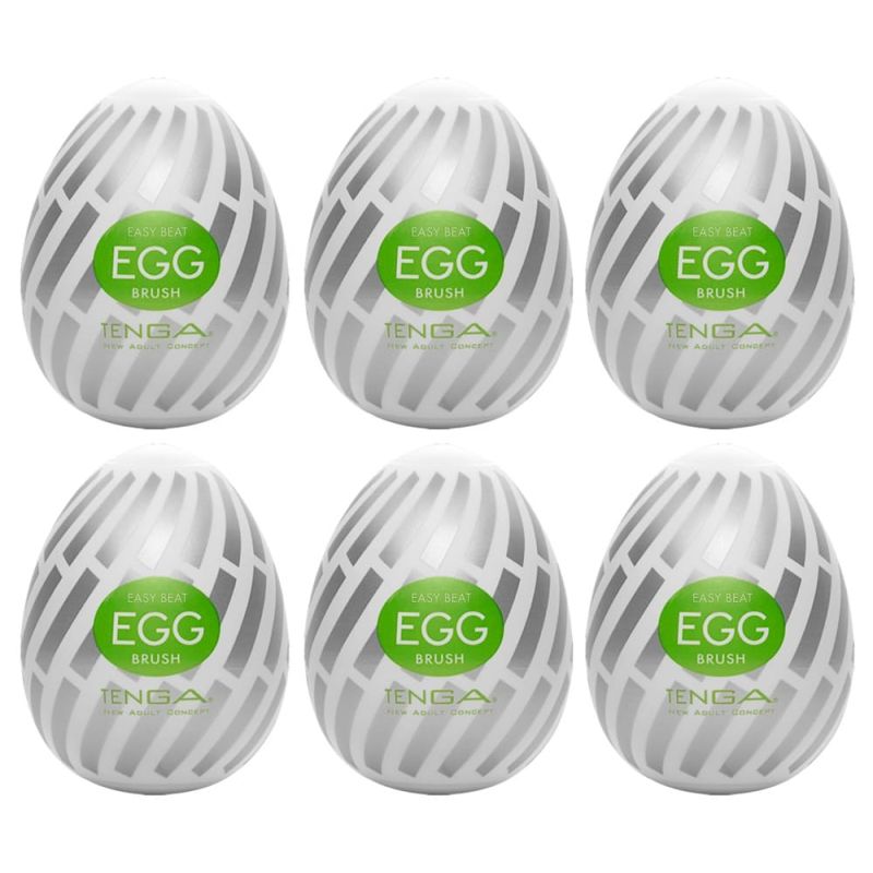 Kompakter Einmal-Masturbator Egg Brush von Tenga mit spannender Softborsten-Reizstruktur im Inneren. Die ultra flexible Masturbator-Sleeve befindet sich in der eiförmigen Hülle und wird zusammen beim Handjob mit dem beiliegenden Gleitgel verwendet.