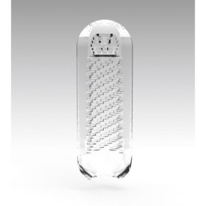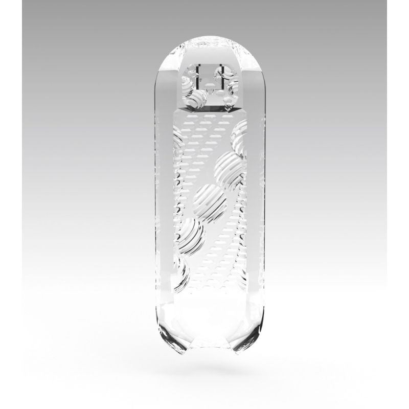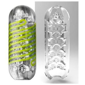 Transparenter, wiederverwendbarer Masturbator mit integrierter Spule, die bei Penetration den Masturbator ins Drehen versetzt (Internal Coil Mechanism). Ausgeprägt reizstrukturierter Lustkanal.