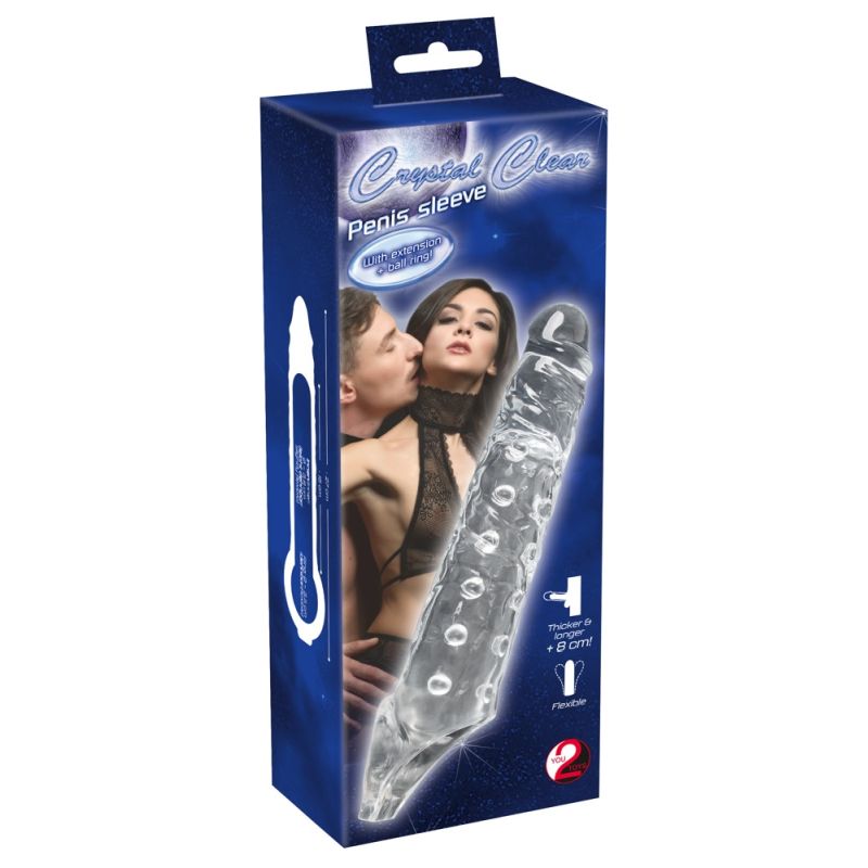 Die transparente Penishülle macht es auf Schlag länger, dicker und standhafter. Das Glied mit etwas wasserbasiertem Gleitmittel in die im Durchmesser leicht dehnbare Hülle einführen. Sie passtsich perfekt an und überzeugt mit massiver Eichel, Äderung und dicken Stimulationsnoppen. Alles Attribute, die auch Deine Partnerin beim gemeinsamen Liebesspiel spürbar erfreuen! Na dann, viel Vergnügen…