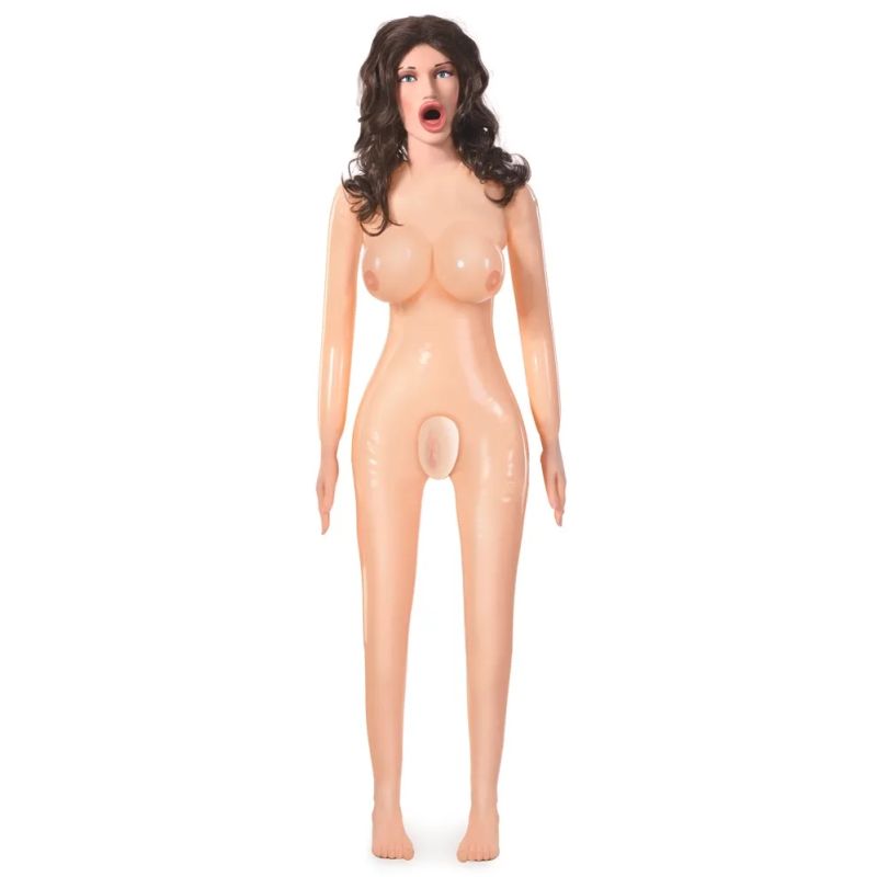 Diese Liebespuppe blickt den Betrachter sinnlich an mit ihrem verführerischen 3D-Gesicht und den langen, braunen Haaren. Auch die Hände und Füße sind ausgeformt und laden zu Streicheleinheiten ein, während die kecken großen Brüste mit festen Nippeln bestechen. Die beiden Lustkanäle befinden sich in einem Masturbator, der herausnehmbar ist und die Reinigung erleichtert. Dieser ist innen strukturiert. Auch ihr Mund steht bereit für befriedigende Stoßmomente.