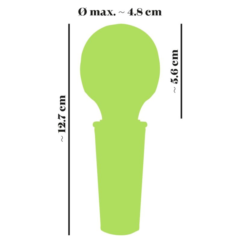 Gesamtlänge 12,7 cm, Massagekopf 5,6 cm lang, Ø max. 4,8 cm.
