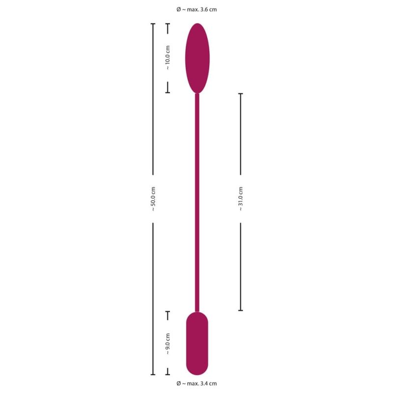 Das RC Shaking & Vibrating Love Egg Duo von Sweet Smile überrascht gleich mit 2 kraftvollen Bullets, die mit einem 31 cm langen flexiblen Silikonband miteinander verbunden sind. Das eine Bullet schüttelt und pulsiert, das andere vibriert. So ist die gleichzeitige vaginale/anale oder äußere/innere Stimulation beim Solospiel bequem möglich, sowie raffinierte Doppel-Stimulationen beim Spielen zu zweit.